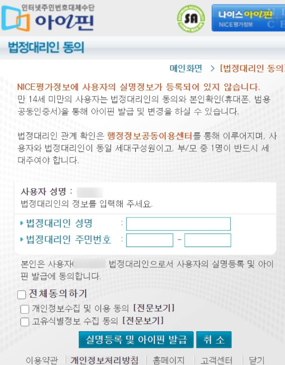 → 개인정보 보호법에 의거하여 부모의 인증후 사용가능