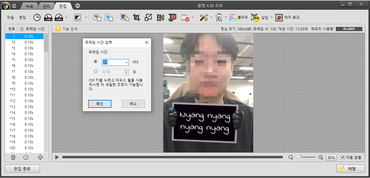 | 꿀캠 WebP Export (퀄리티 100) / 30Fps | |